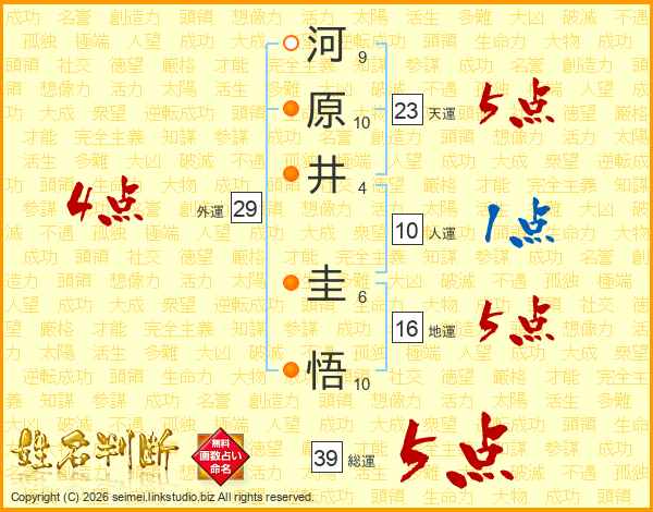河原井圭悟さんの総運は39画の5点!