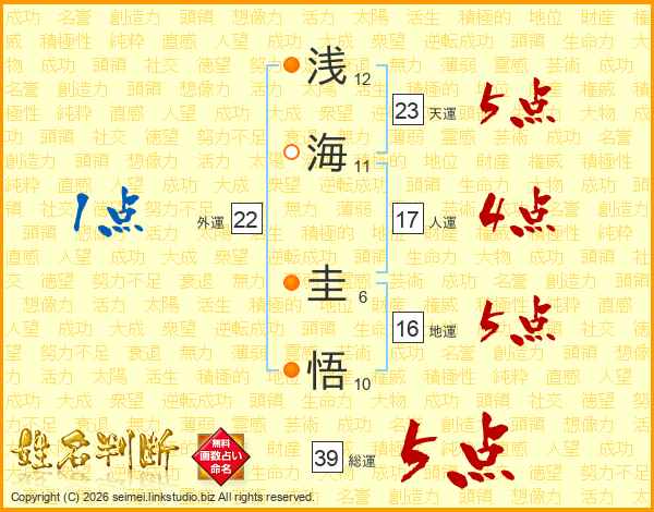 浅海圭悟さんの総運は39画の5点!