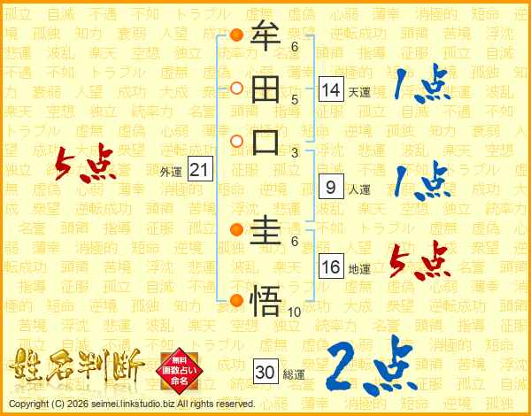 牟田口圭悟さんの天運は14画の1点!
