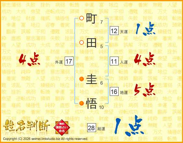 町田圭悟さんの人運は11画の4点!
