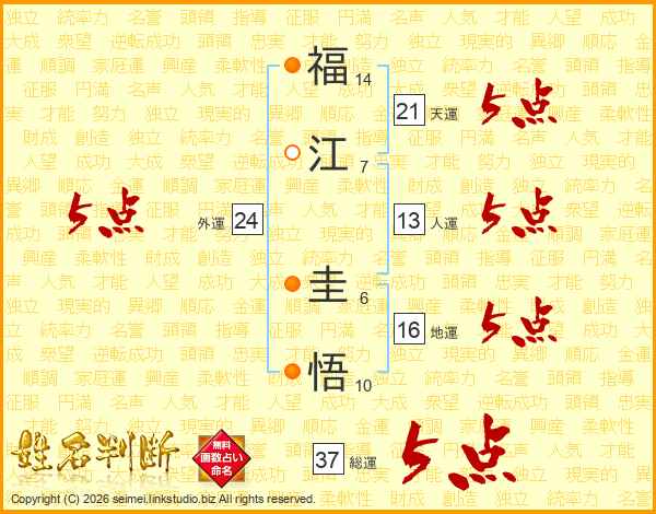 福江圭悟さんの総運は37画の5点!