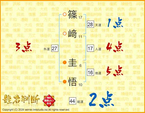 篠(17画)﨑(11画) 圭(6画)悟(10画)