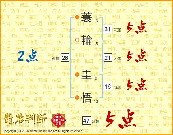 蓑輪圭悟さんの総運は47画の5点!