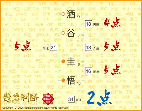 酒谷圭悟さんの総運は34画の2点!