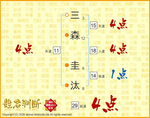 三森圭汰さんの総運は29画の4点!