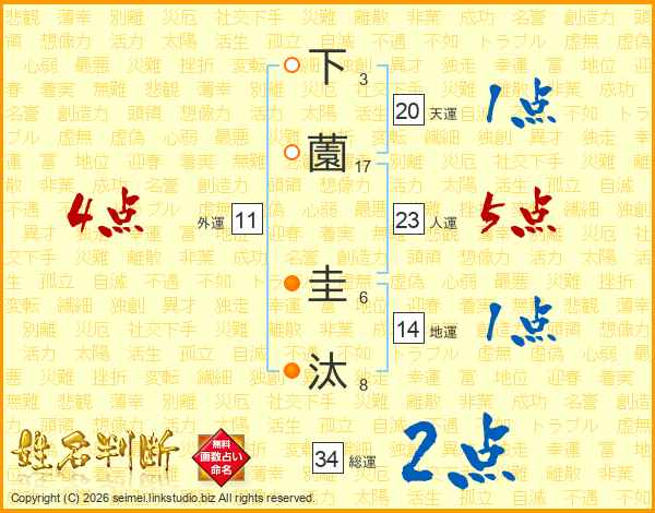 下(3画)薗(17画) 圭(6画)汰(8画)