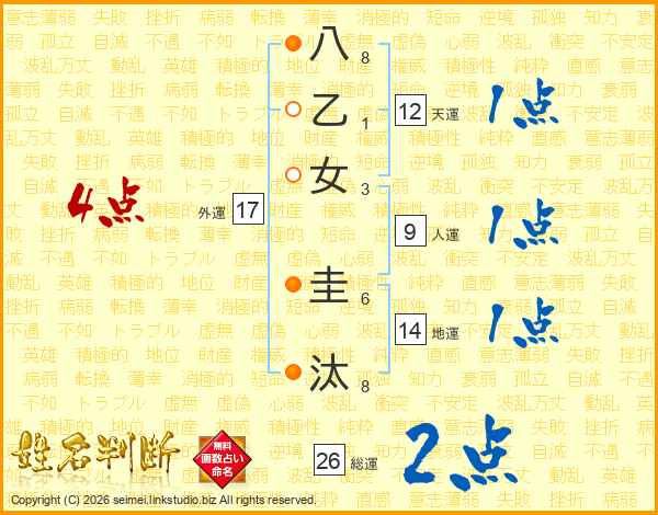 八乙女圭汰さんの総運は26画の2点!