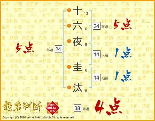 十六夜圭汰さんの総運は38画の4点!