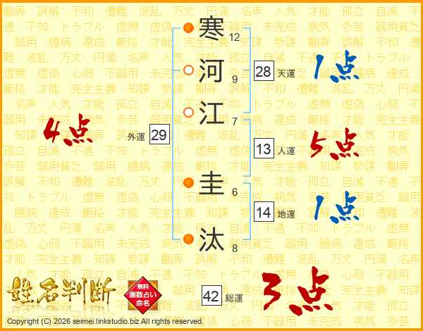 寒河江圭汰さんの人運は13画の5点!