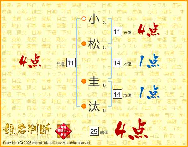 小松圭汰さんの総運は25画の4点!