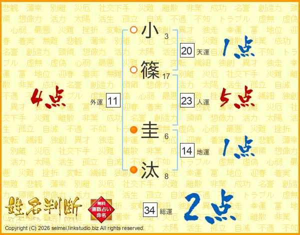 小(3画)篠(17画) 圭(6画)汰(8画)