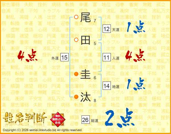 尾田圭汰さんの総運は26画の2点!