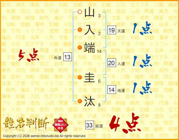 山入端圭汰さんの総運は33画の4点!