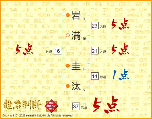 岩(8画)満(15画) 圭(6画)汰(8画)