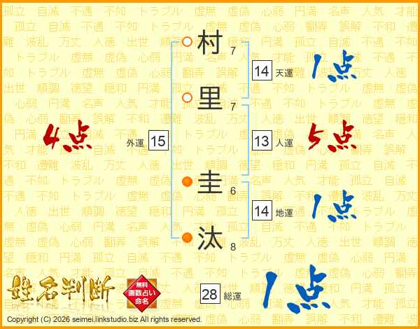 村里圭汰さんの総運は28画の1点!