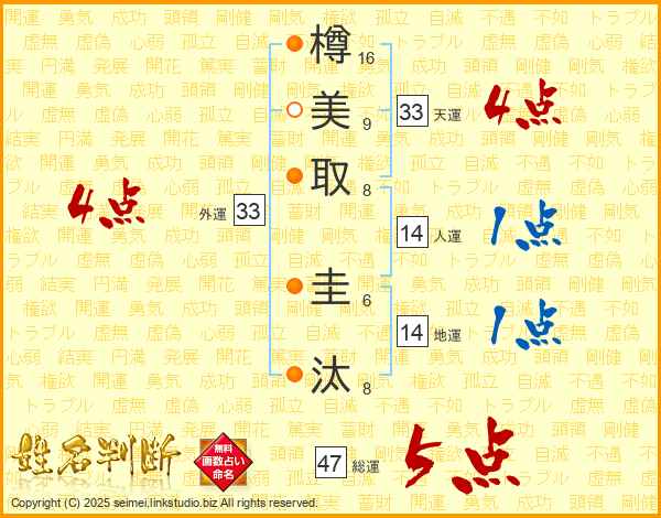 樽美取圭汰さんの総運は47画の5点!