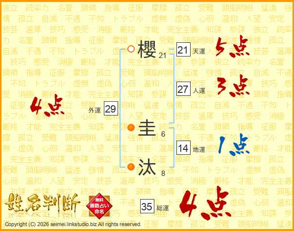 櫻圭汰さんの総運は35画の4点!