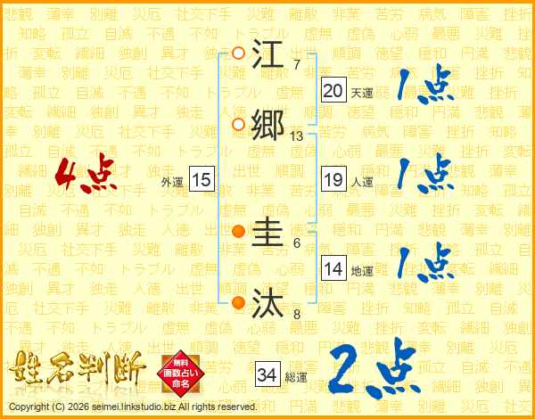 江郷圭汰さんの総運は34画の2点!