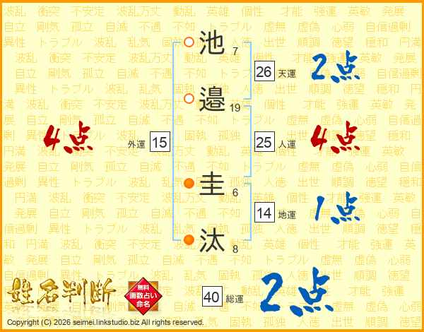 池邉圭汰さんの総運は40画の2点!
