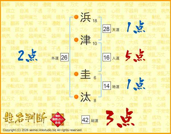 浜津圭汰さんの外運は26画の2点!
