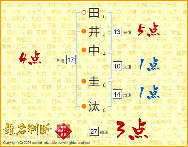 田井中圭汰さんの総運は27画の3点!