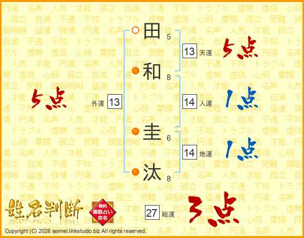 田和圭汰さんの総運は27画の3点!