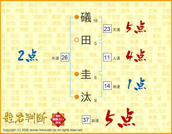 礒田圭汰さんの天運は23画の5点!