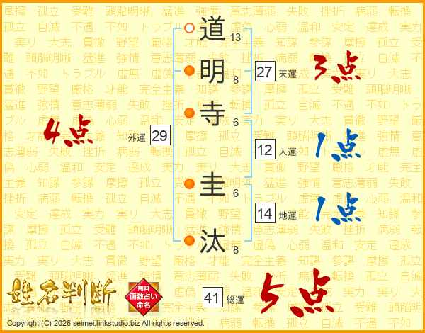 道明寺圭汰さんの総運は41画の5点!