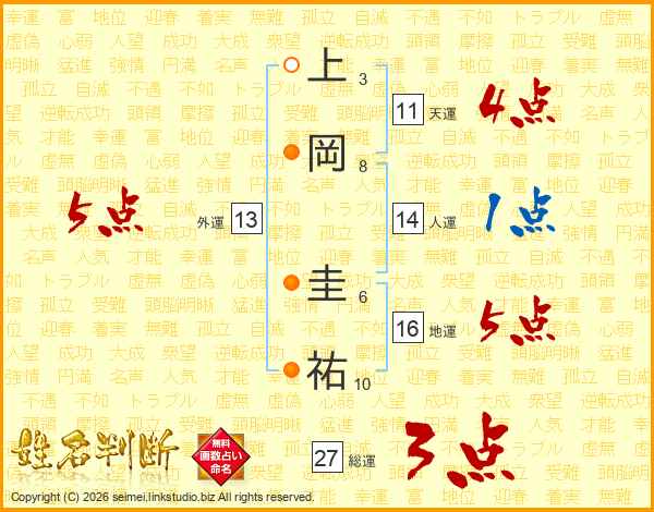 上岡圭祐さんの外運は13画の5点!