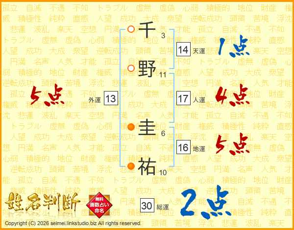 千野圭祐さんの天運は14画の1点!