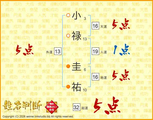 小(3画)禄(13画) 圭(6画)祐(10画)