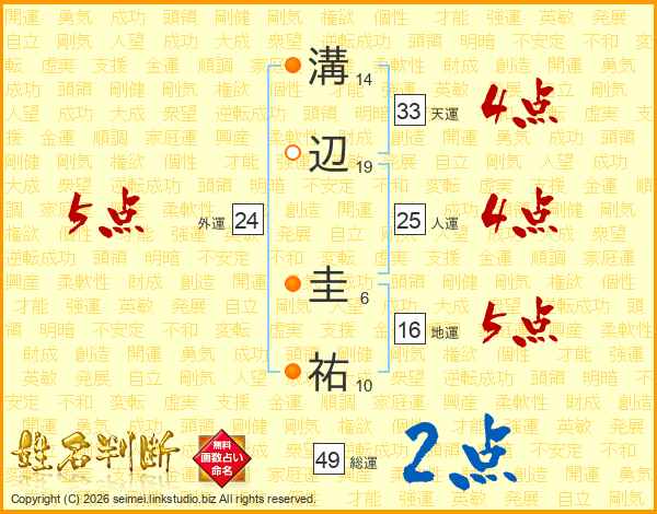 溝(14画)辺(19画) 圭(6画)祐(10画)