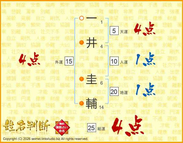 一(1画)井(4画) 圭(6画)輔(14画)
