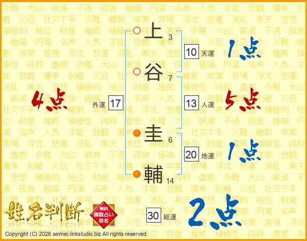 上谷圭輔さんの総運は30画の2点!