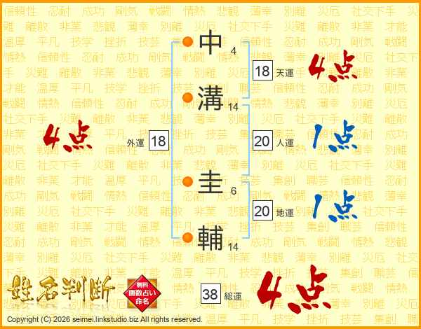 中(4画)溝(14画) 圭(6画)輔(14画)