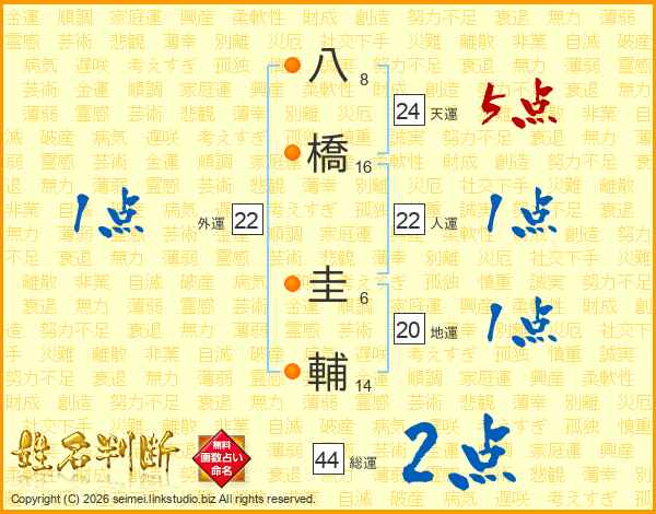 八橋圭輔さんの総運は44画の2点!