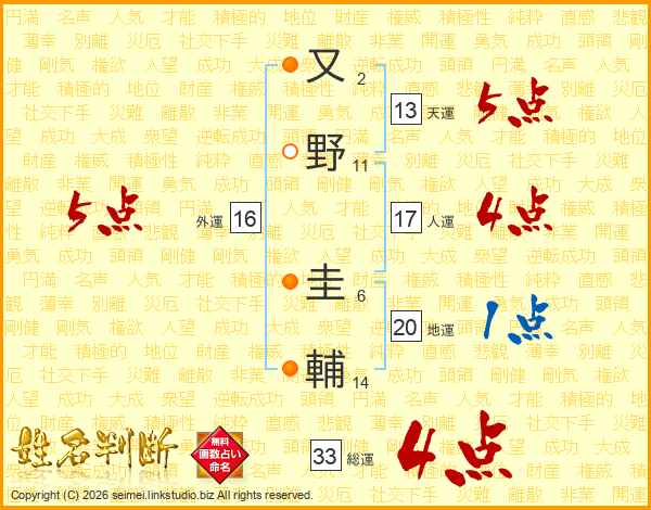 又野圭輔さんの総運は33画の4点!
