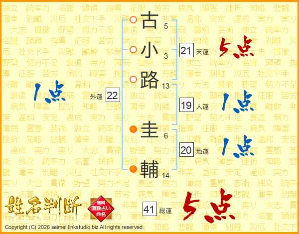 古小路圭輔さんの総運は41画の5点!