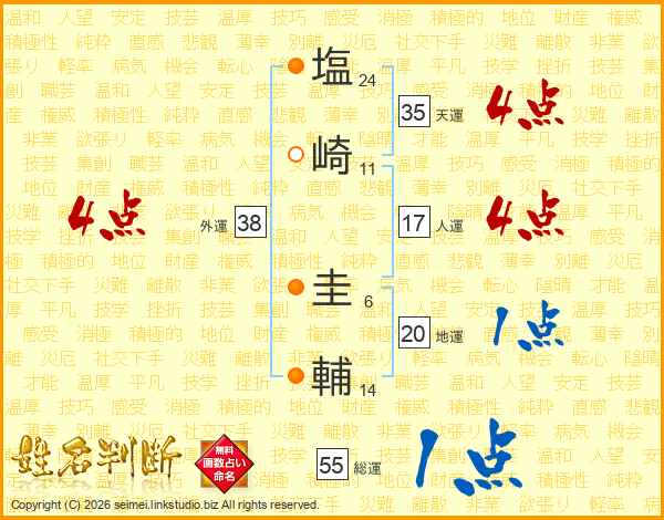 塩崎圭輔さんの外運は38画の4点!