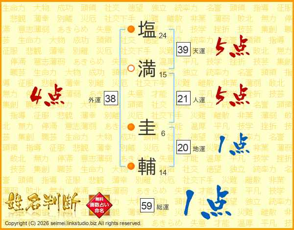 塩(24画)満(15画) 圭(6画)輔(14画)