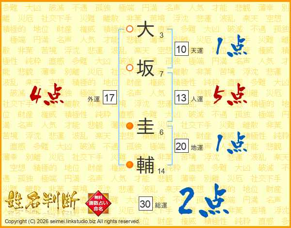 大(3画)坂(7画) 圭(6画)輔(14画)