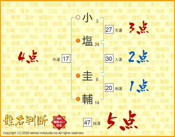 小塩圭輔さんの総運は47画の5点!