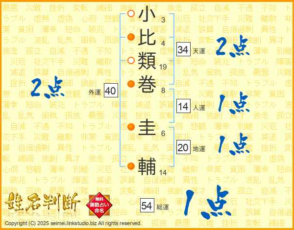 小比類巻圭輔さんの総運は54画の1点!