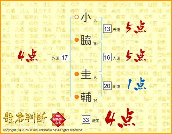 小(3画)脇(10画) 圭(6画)輔(14画)