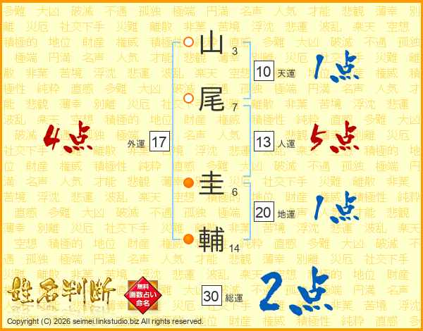 山尾圭輔さんの総運は30画の2点!