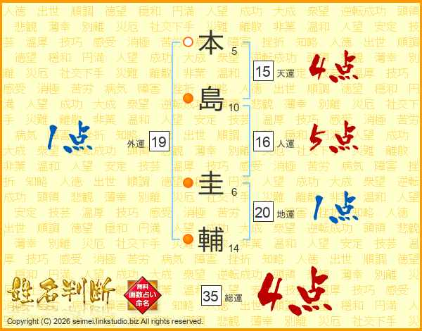 本島圭輔さんの総運は35画の4点!