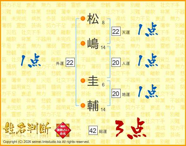 松(8画)嶋(14画) 圭(6画)輔(14画)