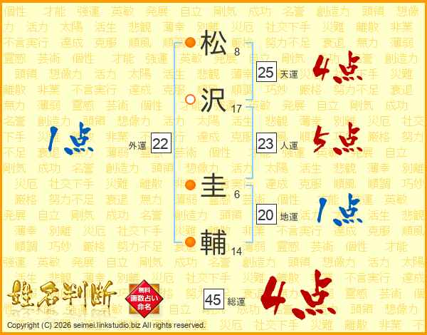 松(8画)沢(17画) 圭(6画)輔(14画)