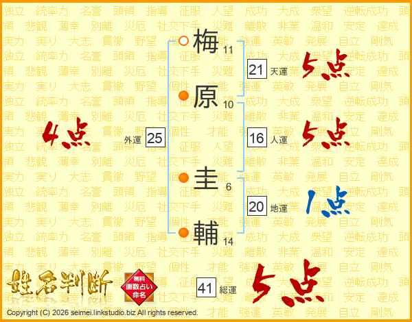 梅原圭輔さんの天運は21画の5点!