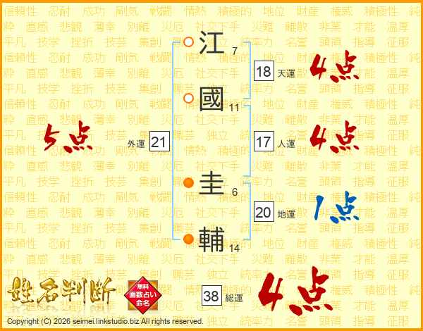 江國圭輔さんの天運は18画の4点!